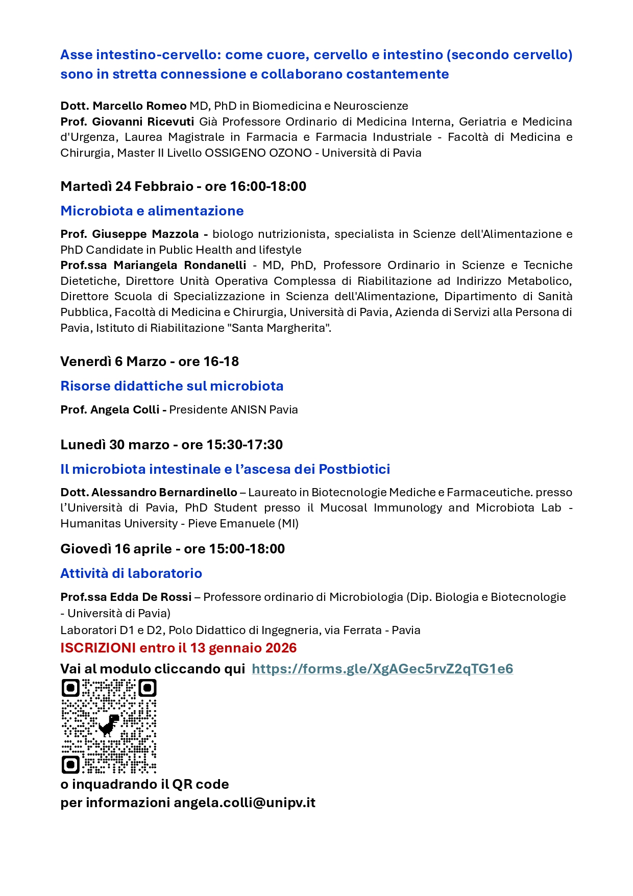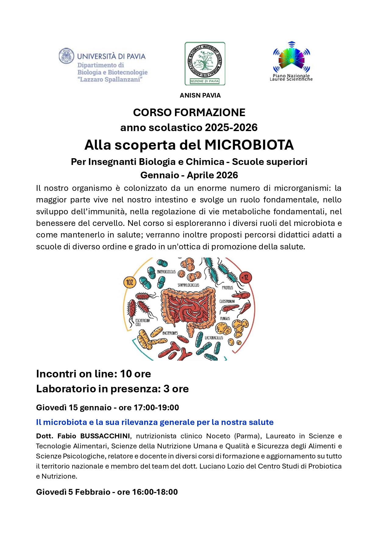 Nella locandina Alla scoperta del MICROBIOTA il programma dettagliato